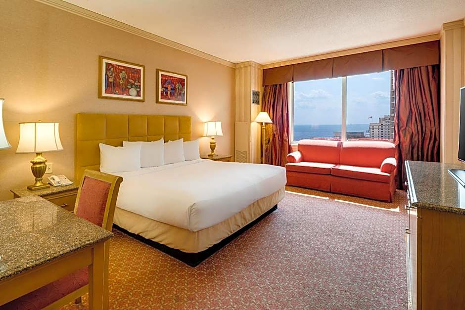 Begin each day with a salty breeze and boardwalk energy along Atlantic City’s iconic corridor. The beachfront setting provides a splash-friendly backdrop, with a water park on site (additional charges) for a playful start to the day. On-site parking is available for a fee, pets are welcome with possible charges, and even in the evening there’s live music and performances to soundtrack sunset strolls by the sea.